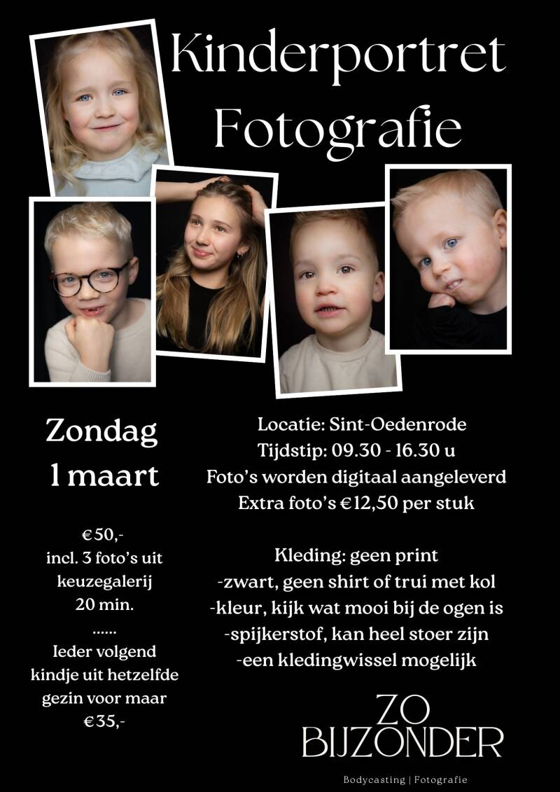 Op zondag 1 maart vindt de eerste kinderportretjesdag plaats met een speciale introductieprijs!